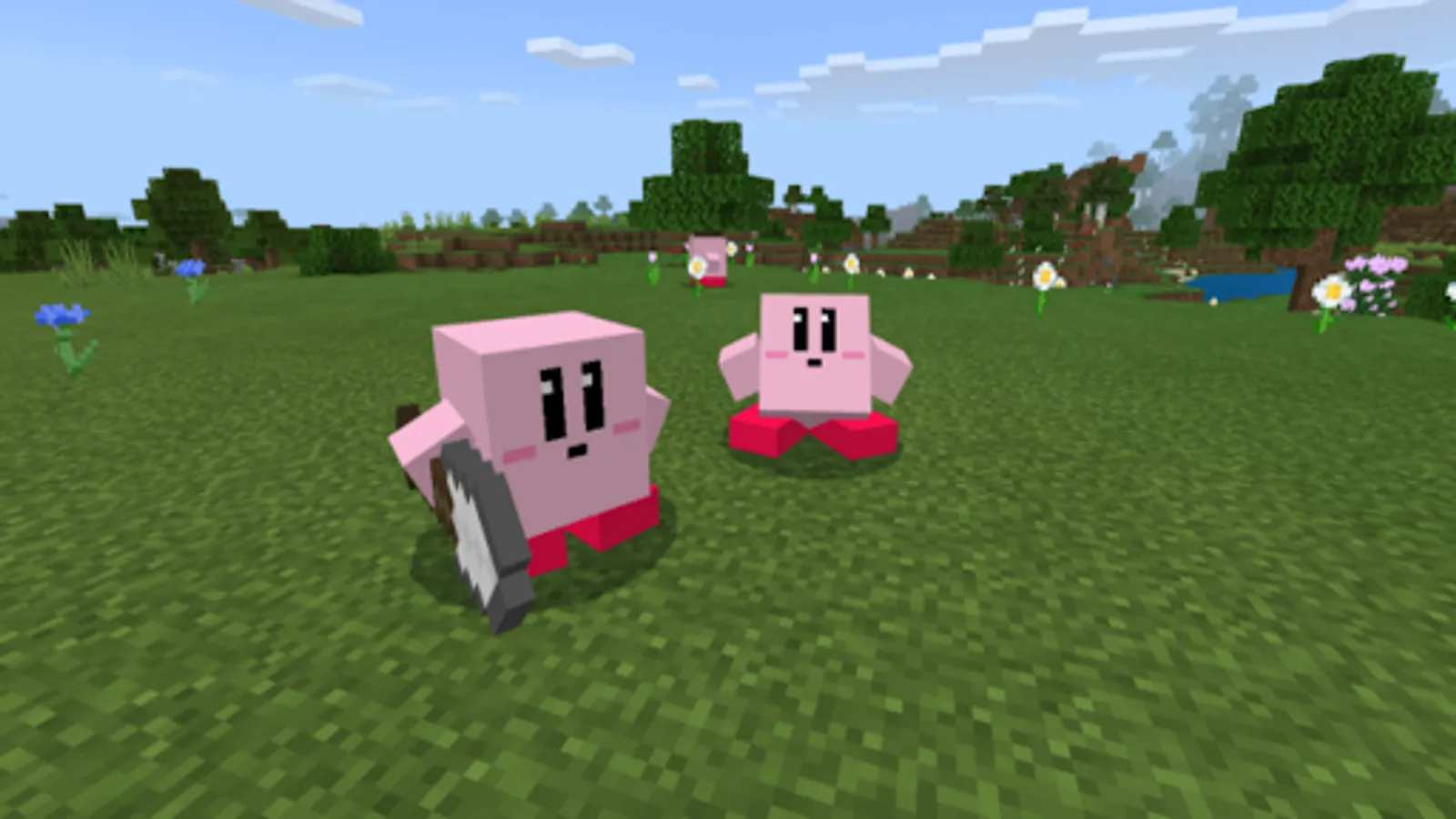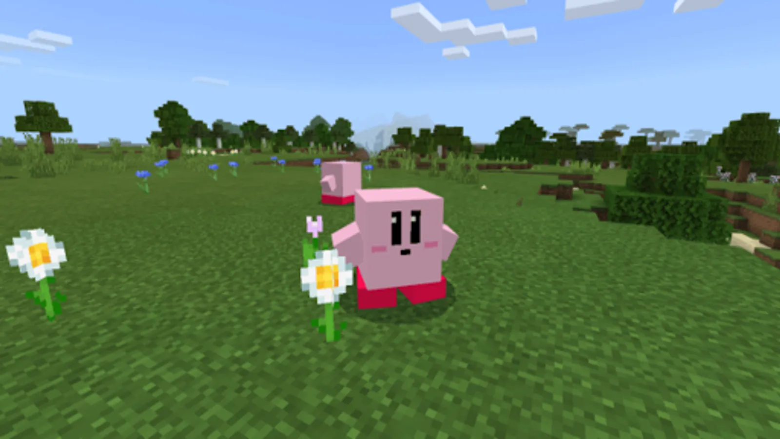 With this add-on add to your Minecraft world the character of Kirby Minecraft version taken from Super Smash Bros Ultimate, so you can get it as a pet or have it as a skin and includes sounds.