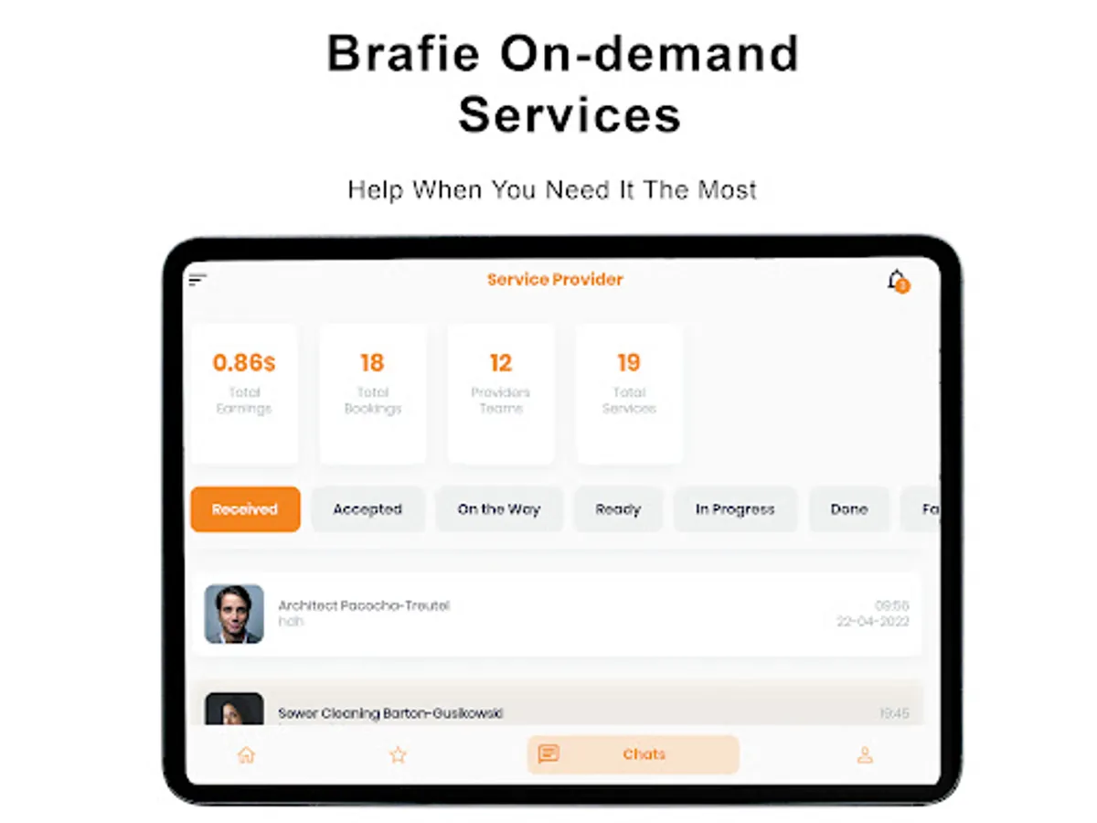 Brafie Provider app helps in getting new customers and growing your business easier than before. By connecting thousands of customers to service professionals every day, Brafie is successfully providing jobs to 5000+ service professionals. Our vision is to provide service professionals like you a bankable platform that not only markets you but also helps you find genuine customers using the power of technology.