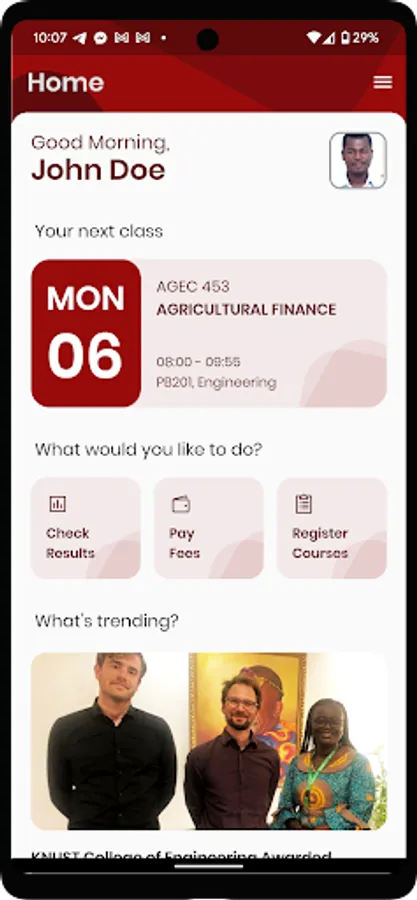 Academic Information Manager (AIM) is the official mobile app for students of Kwame Nkrumah University of Science and Technology. It is developed by the University Information Technology Services (UITS). It is a mobile companion of the online student portal which is also a part of KNUST Student Information System. Its main objective is to bring functions of the online student portal to mobile devices. The key functions of AIM are listed below.