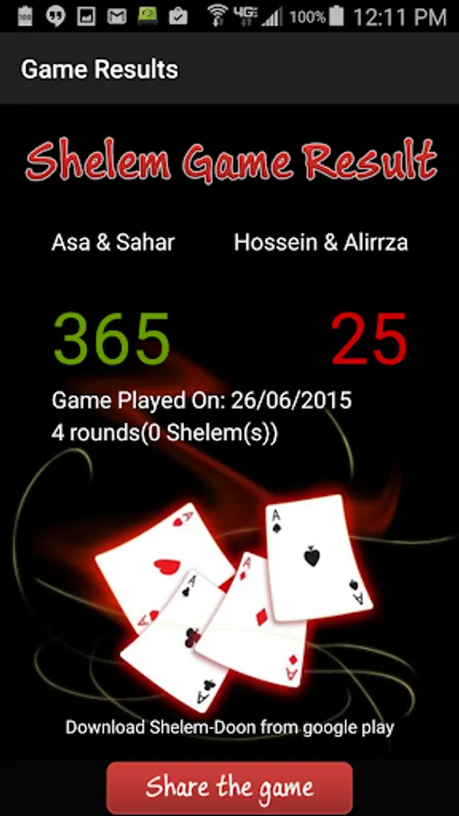 • Option to choose between different types of Shelem games(165- 200- 225 point games)
