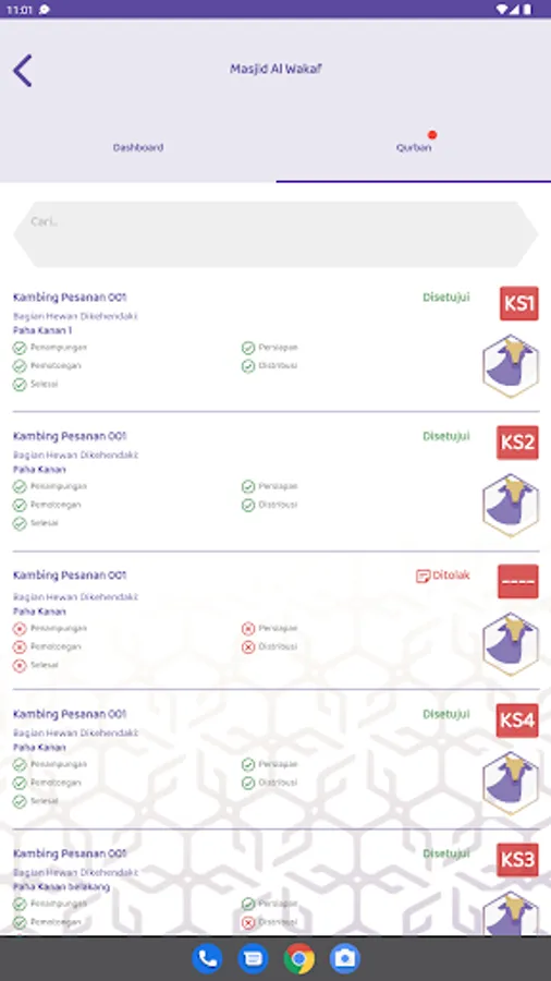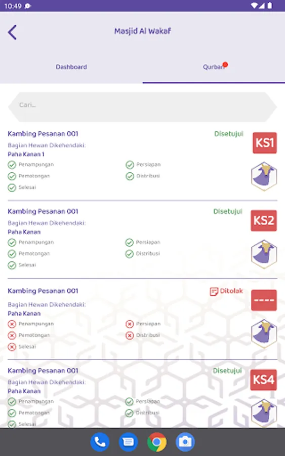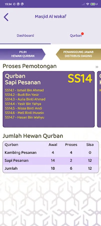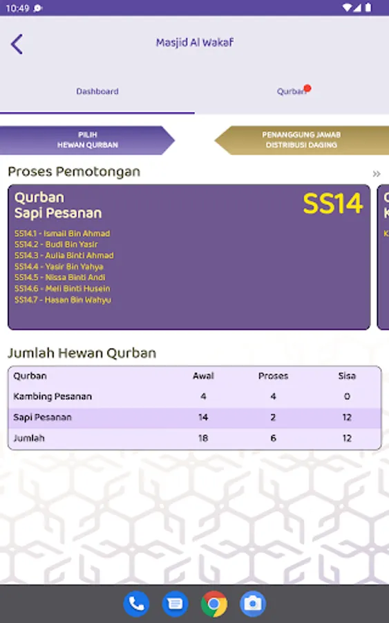 Qurban: Baiti provides easy and monitored qurban solutions, from purchasing qurban animals to distributing qurban packages. Jama'ah who make qurban (muqorib) can also monitor the status of their qurban animal from home via cellphone, so they can be present when the animal is ready to be slaughtered.