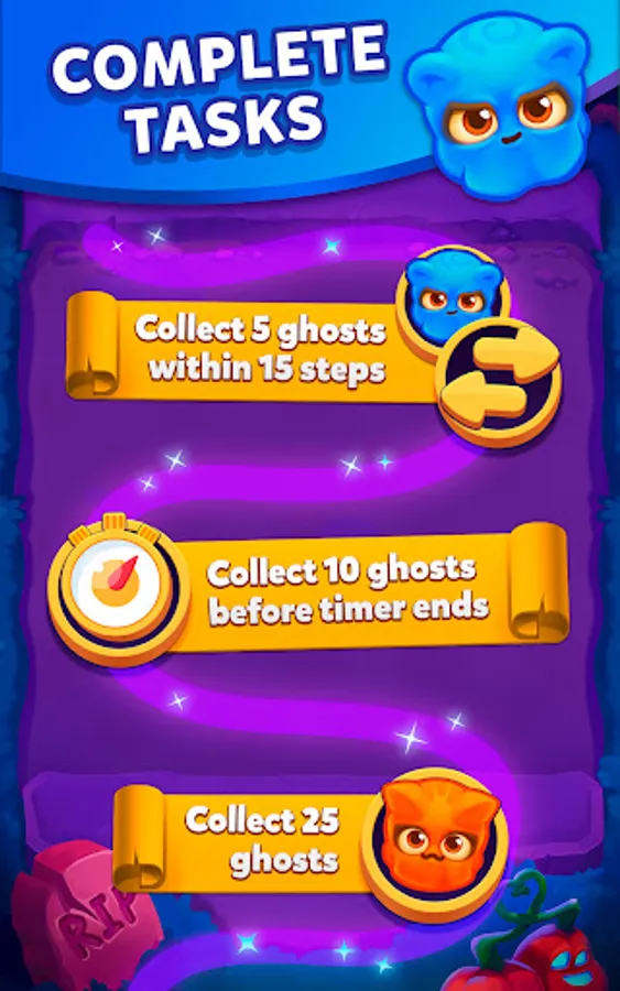 2. Other ones may ask you to match a certain number of ghosts of a specific color within a restricted number of moves or even seconds;