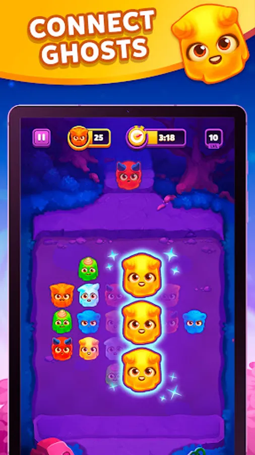 When you start matching ghosts, the field fills with random spirits. Just tap to drop the block – it will send colored souls along one of the columns of the playing field. The matching game begins!
