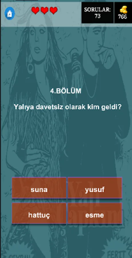 The Kingfisher. Witness the epic love of Seyran and Ferit. Seyran, Ferit, Abidin, İfakat, Fuat, Carlos, Orhan, Suna, Esme, Halis Ağa, Gülgün, Latif, Şefika, Yusuf, Aunt Hattuç, İbrahim, Pelin, Sultan. All events, intrigues are here. The Kingfisher will pull you in right away. How will Seyran and Ferit's love progress? What obstacles will Seyran and Ferit encounter? Solve questions, learn and have fun.