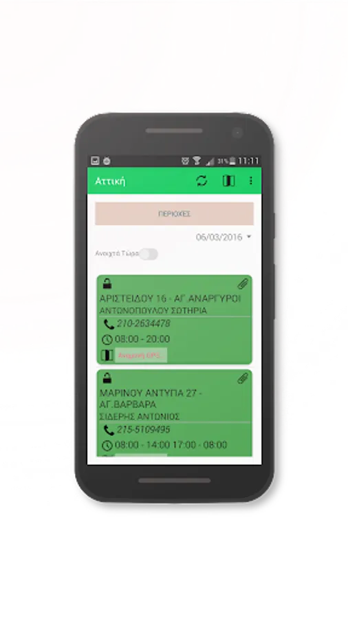 The application provides the possible operation of the projection on duty pharmacies in all major cities.