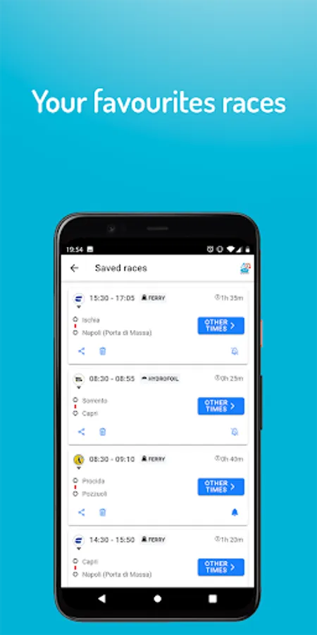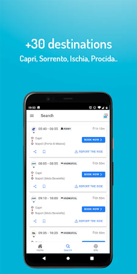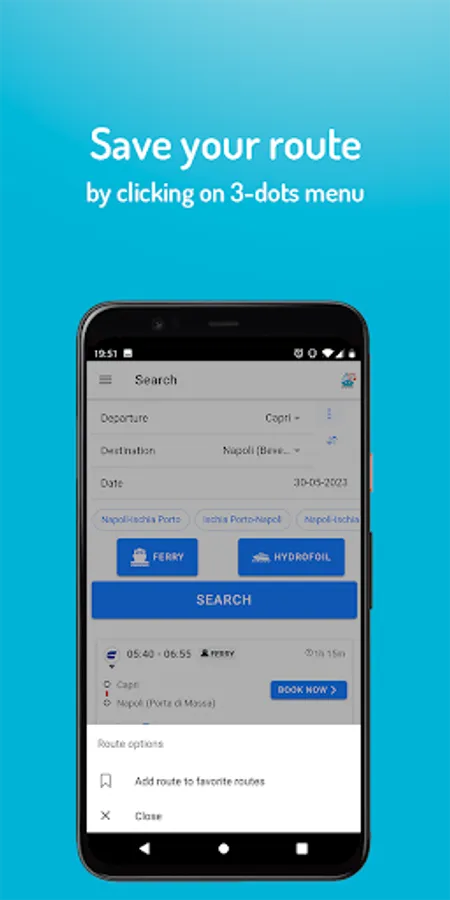 Search all the routes in the Gulf of Naples all the hydrofoil and ferry operators to find the next start in a few seconds - Alilauro, Caremar, Medmar, SNAV.