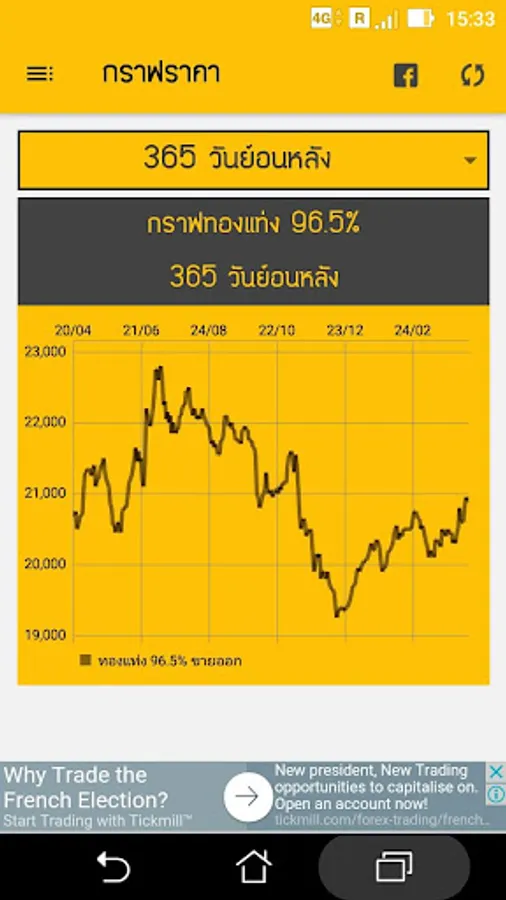 2. A chart showing the historical price of gold showing the price of the past 15 - 365 days