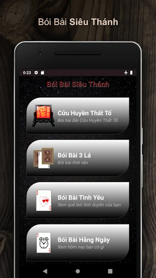 Ứng hỗ trợ các hình thức bói bài như sau: