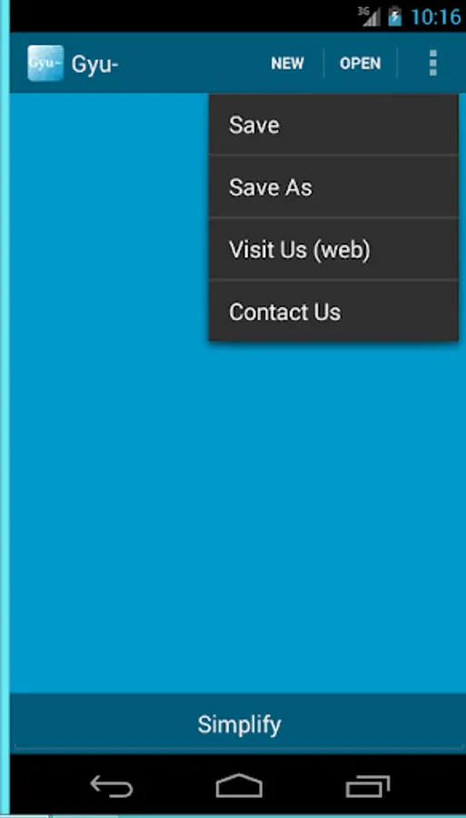 Open a text file or paste your text into Gyu~'s simple interface and press the button. Where possible your text will be shortened and simplified.
