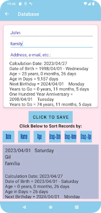 Life - Birthday Calculator. An app to calculate birthdays, save them in your database and never forget the most important dates.