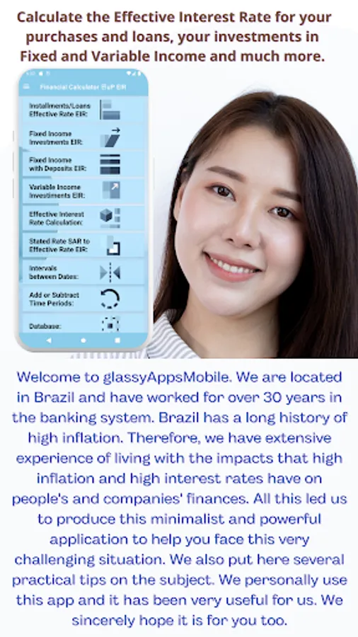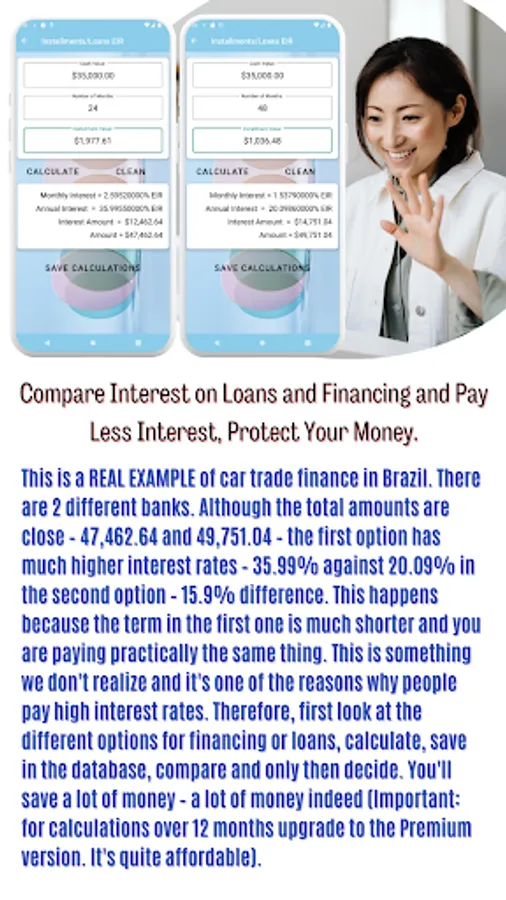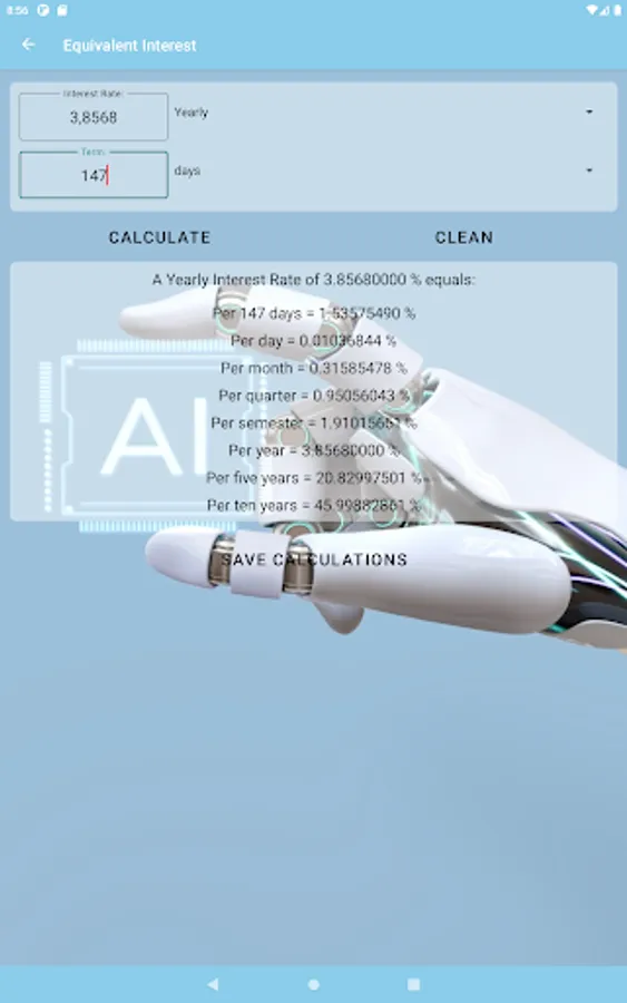 This application also has a date calculator and a database where you can save your calculations to consult, compare, analyze and make the best decisions.