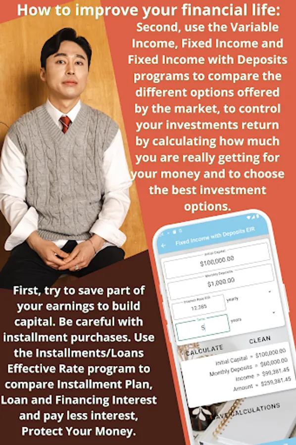With them you can calculate how much you are actually paying on your loans and installments and how much you are actually getting for your investments.