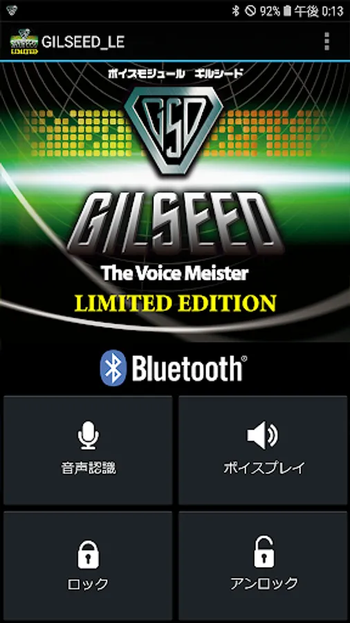 In order to use this application, "GILSEED Bluetooth® Module LIMITED EDITION" (sold separately) モ デ ル "Limited model" is required.