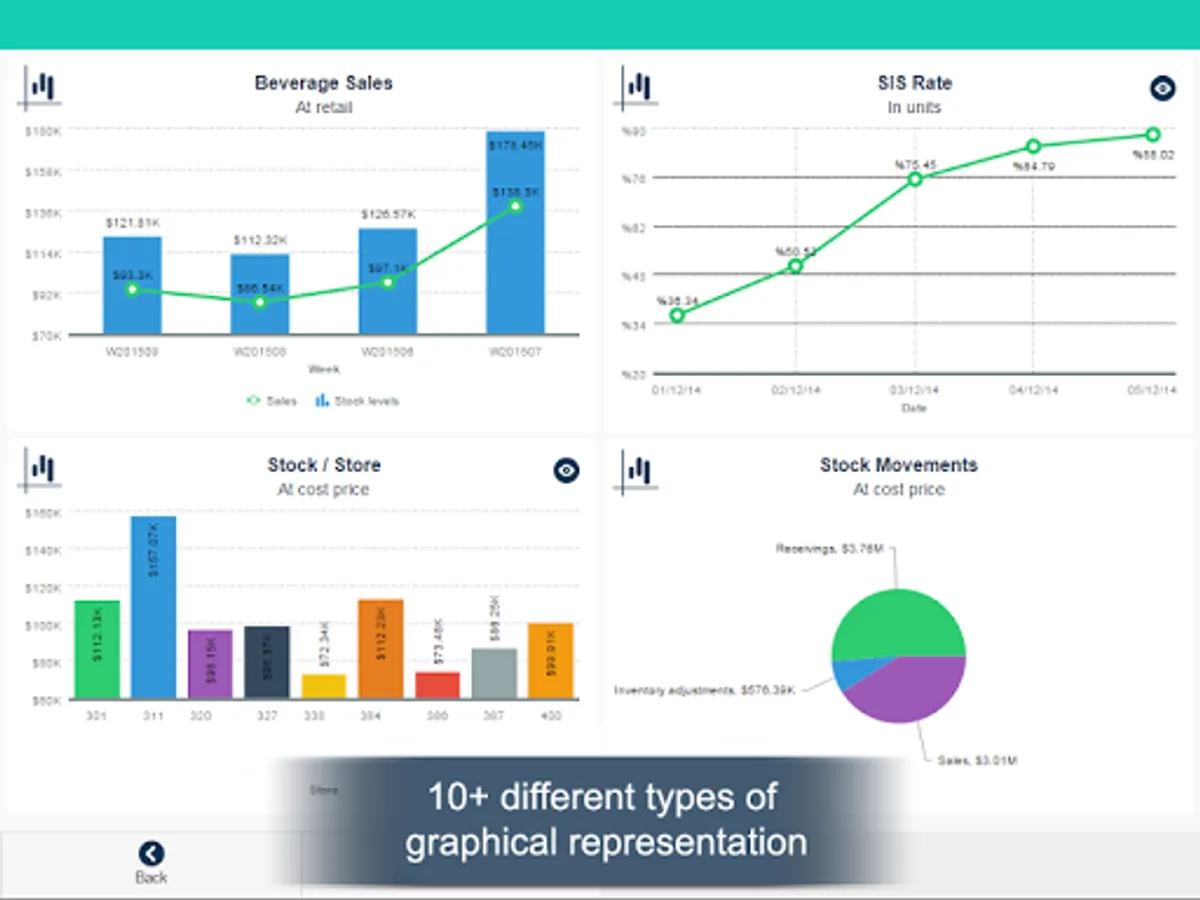 Instant Insights can access data from your Symphony Retail databases as well as third party systems. Aggregate all your information in one single mobile app.