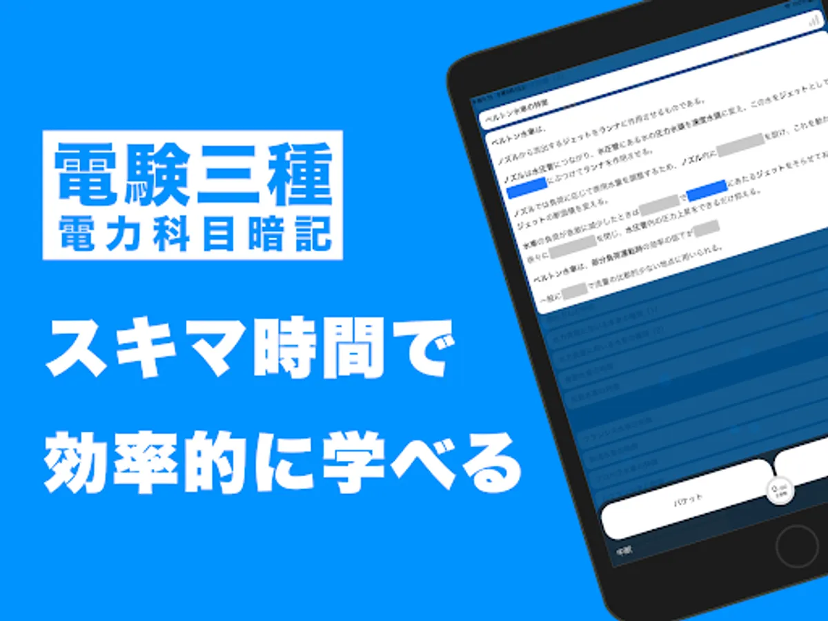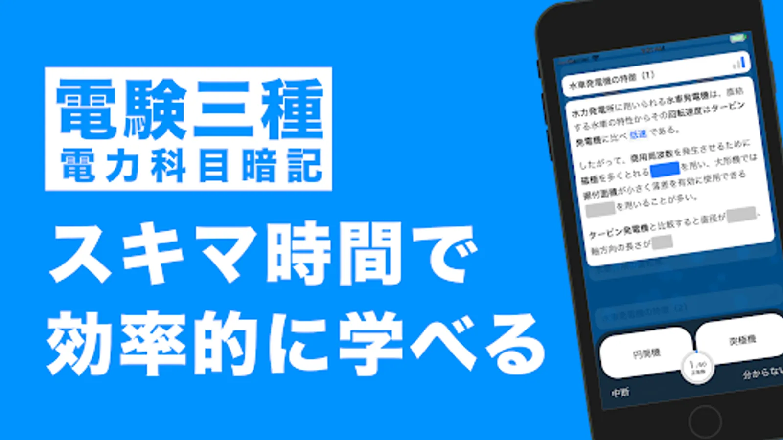 "Electric Test Three Types Electricity Subject Memorization App" is an application for learning the electric power subjects of the third-class electrical chief engineer examination at a good pace and efficiently.