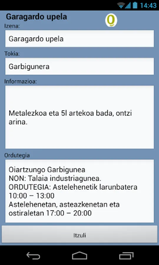 Atez tie, 5.edukiontzia, egungo system, ... Hauek Hondakin non baino ditugu behar boot? Aplikazio honetan, offline gaudela, hondakina dezakegu bilatu Zerrenda nora batting boot.