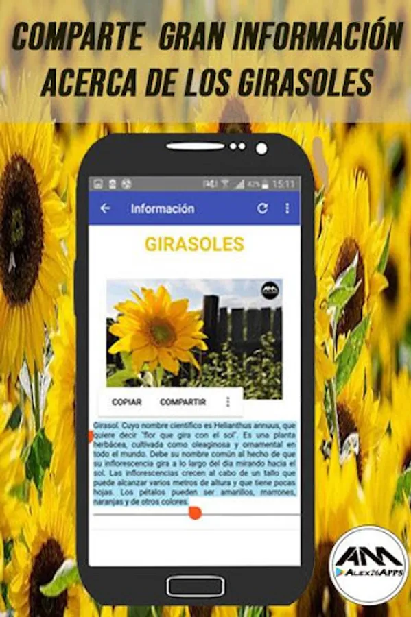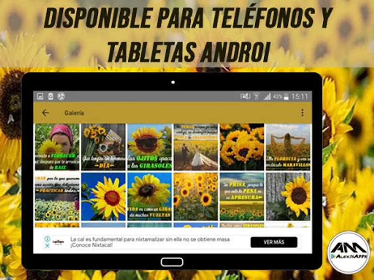 The application that we present to you is called "Sunflowers with love phrases, images", which is a completely free application and has been created for all devices such as mobile phones and tablets, it is not necessary to be connected to the internet for its operation and most advantage is very light you can share it on your social networks.