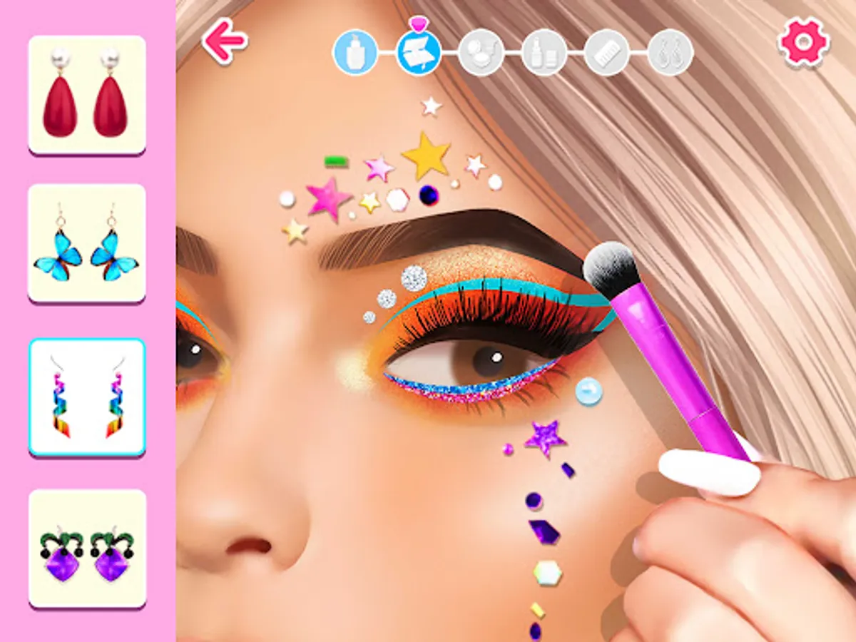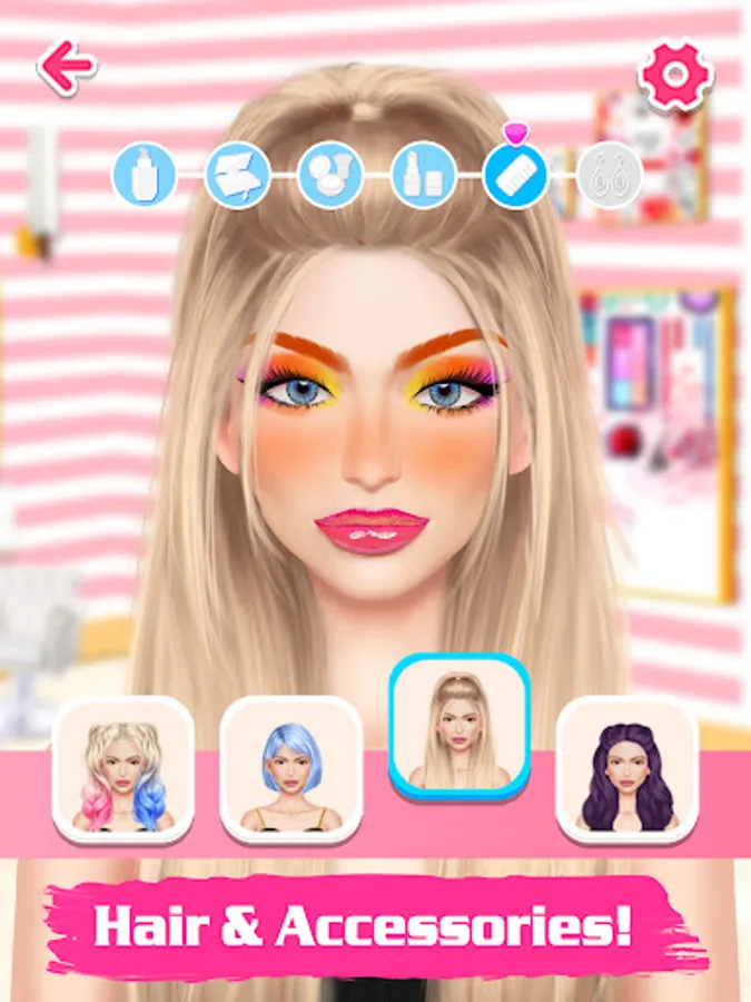You can use the foundation, electric eyebrow razor, and tons of makeup brushes. After makeup, you can pick out the most suitable hairstyles, earrings and necklaces for girls.