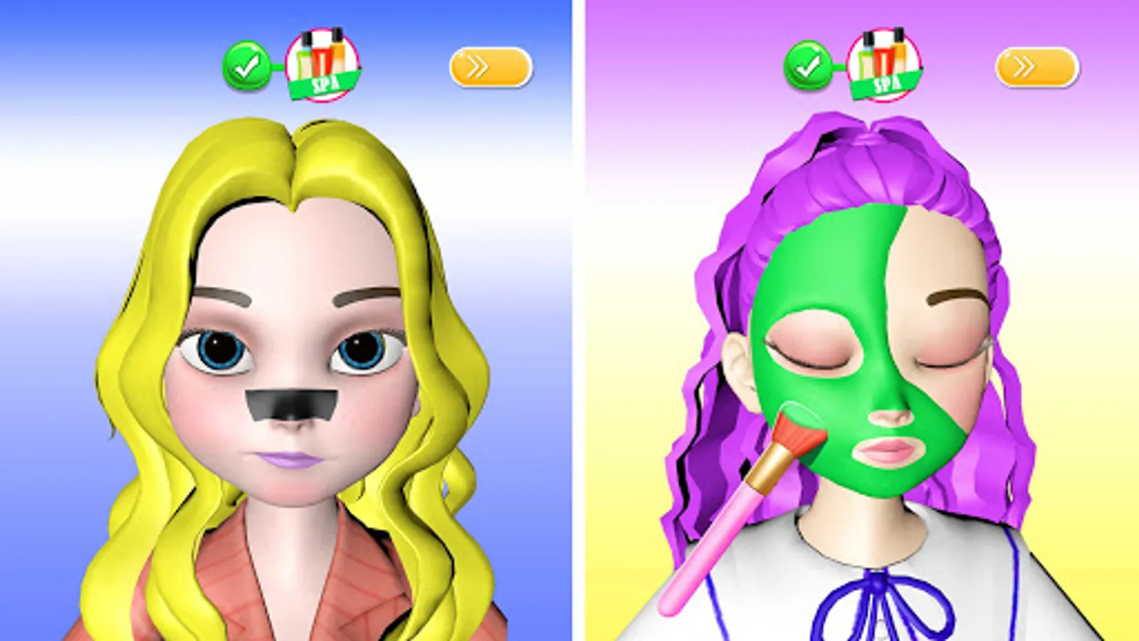 Create your own beauty salon! Here are some customers who need your help to make them beautiful. Get rid of the blackheads on the nose, pluck the stray hairs on the eyebrows, and put on beautiful makeup for your customers!