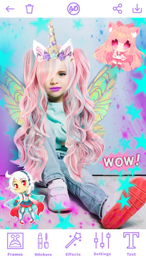 Get magic powers and transform into world’s favourite princess or superhero in Girl Hero Costume 2 photo editor. Simply download this free application and costumes of trendy cartoon characters will appear on your phone. Find your secret ingredient: new hairstyles and makeup, hero stickers for your photos, and perfect filters. Girl Hero Costume 2 - it’s a must-have for fun photomontage lovers. Create a fabulous pic with Girl Hero Costume 2 app!