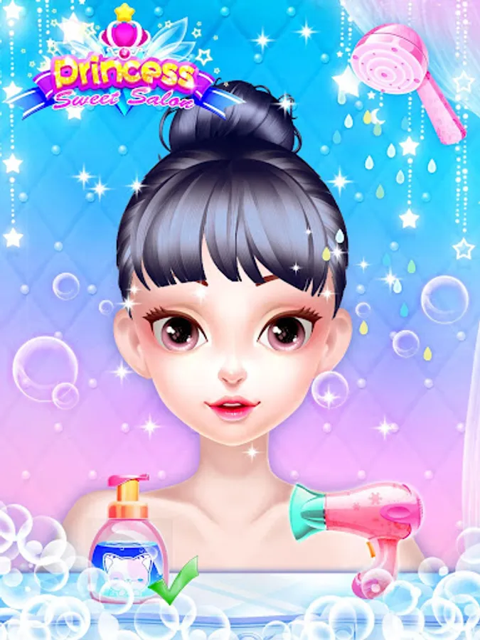 First, we should make sure princess’ hair and skin is clean and clear. Following the royal SPA steps, you can easily clean skin, have a facial mask, trim eyebrows and so on. The dozens of tools are free, so that try them one by one and make princess more beautiful.