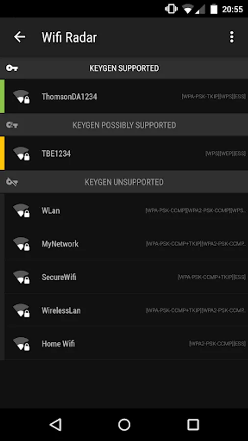 - Recover default passwords for your wifi network with keygen (a lot of common routers are supported).