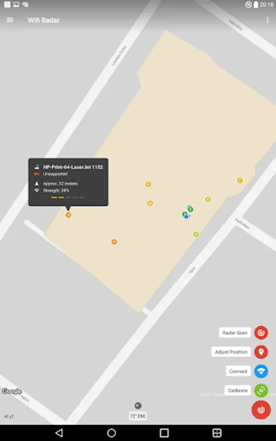 The application uses your device's gps and sensors like digital compass, accelerometer and gyroscope for determining the location of each network and display it on a map.