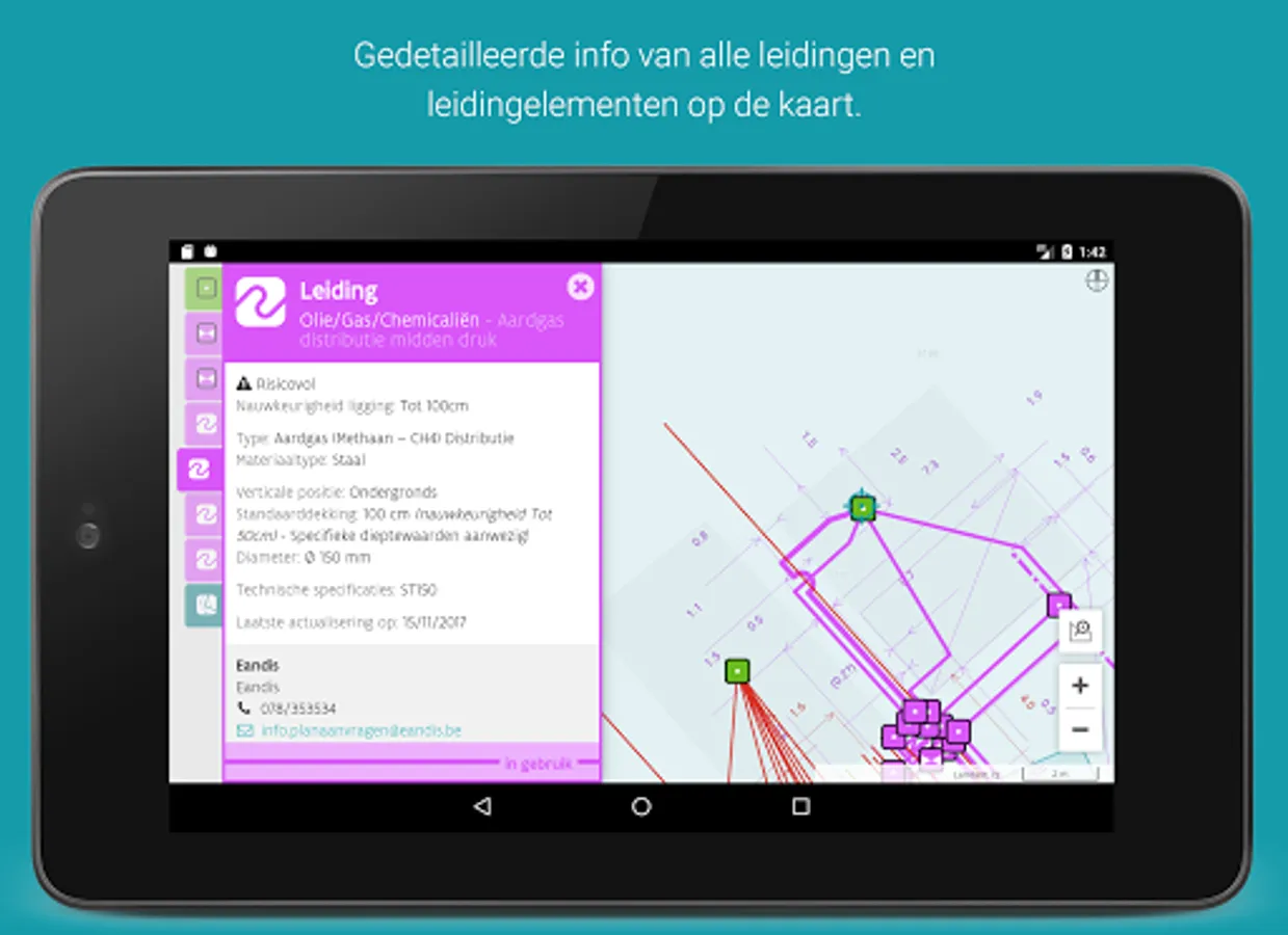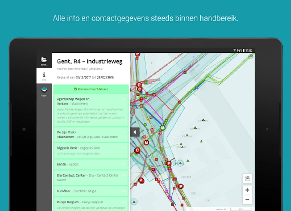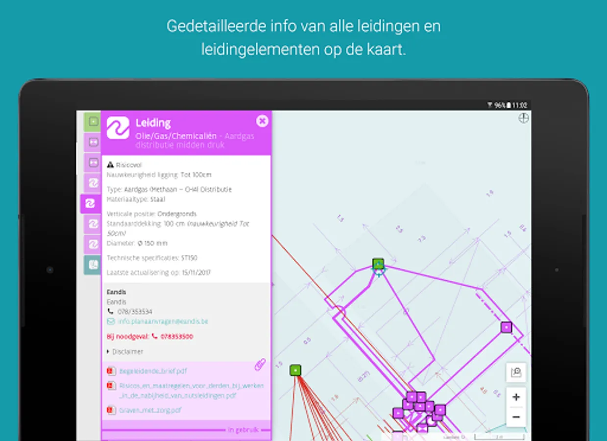 • Click and get a complete list of all infrastructure present at that point;
