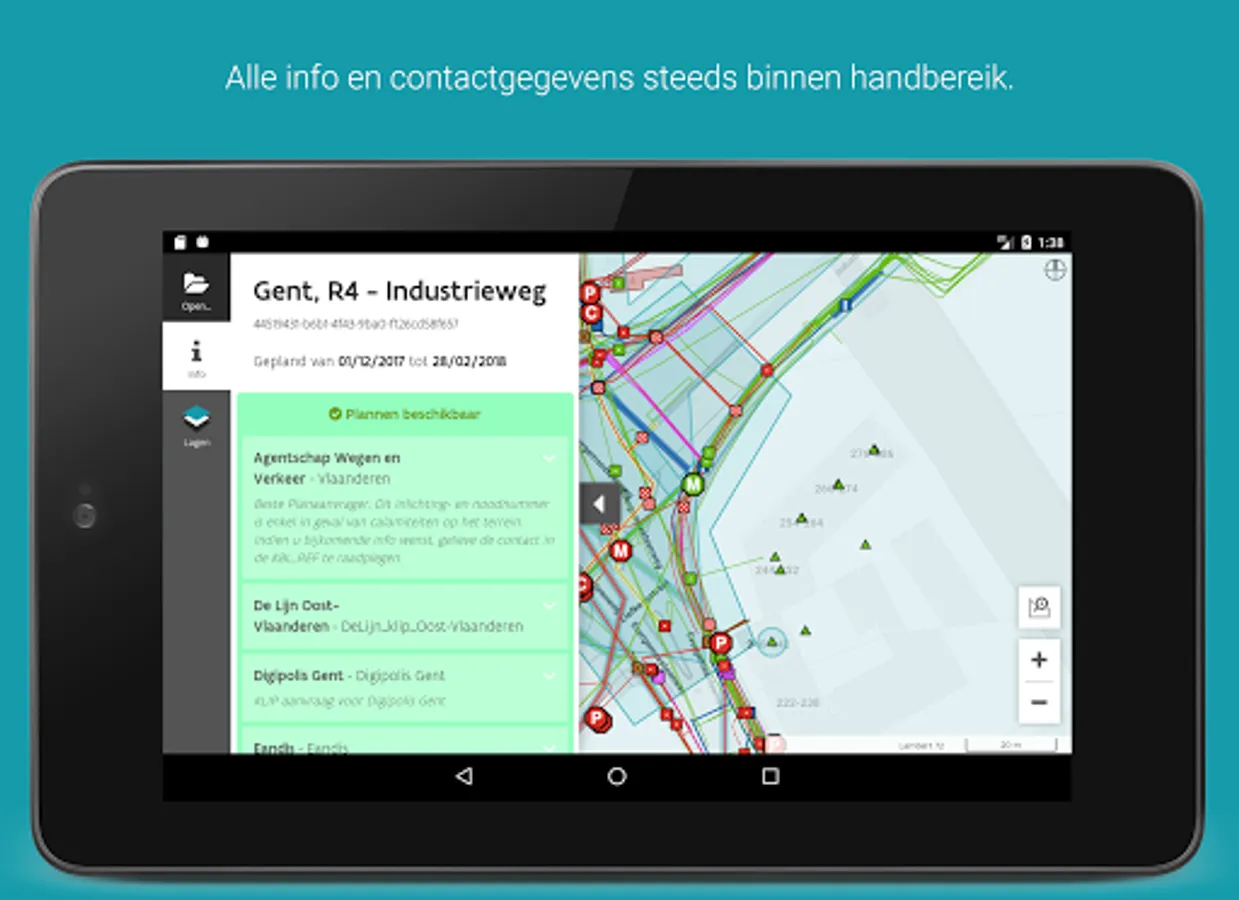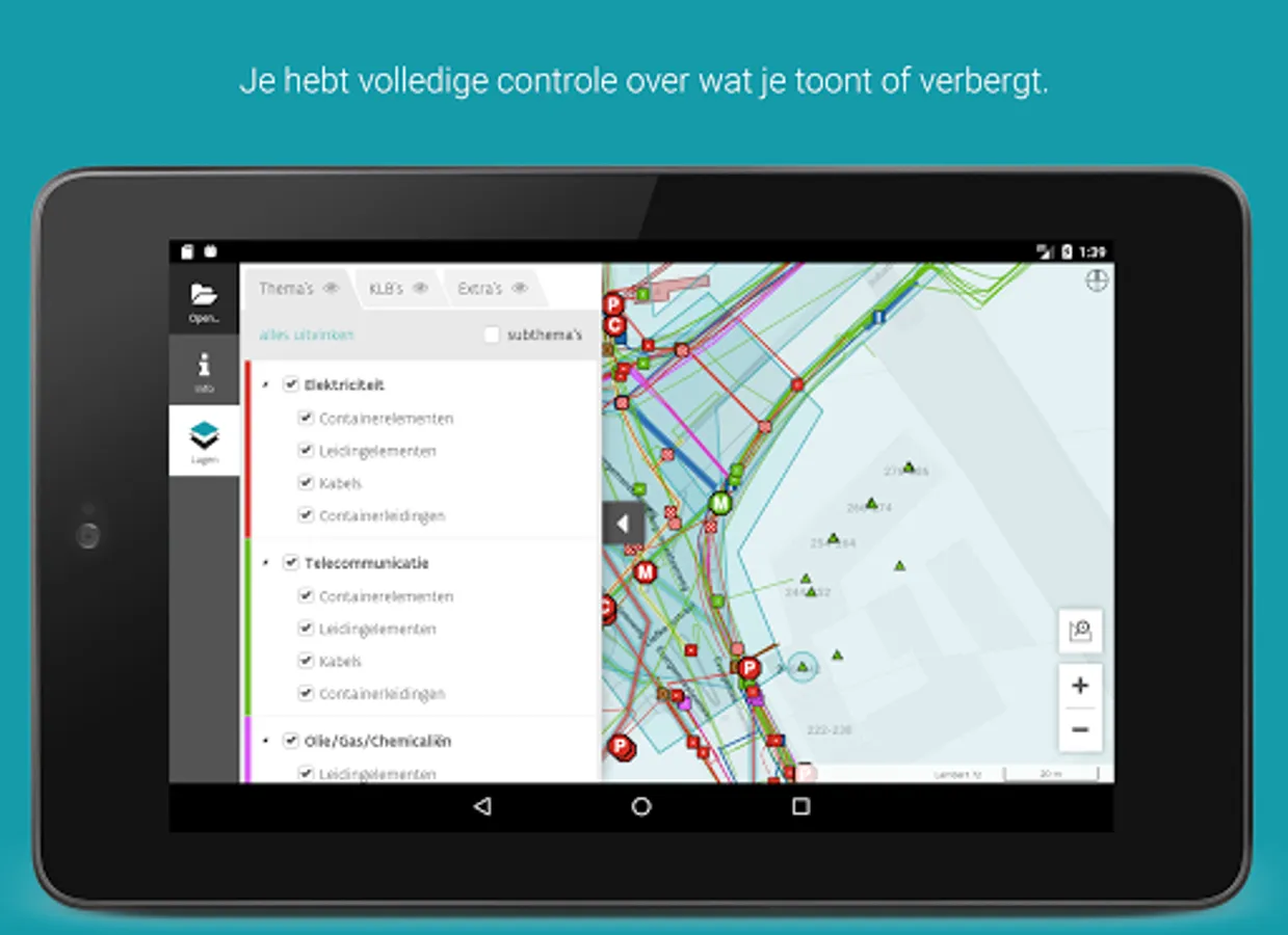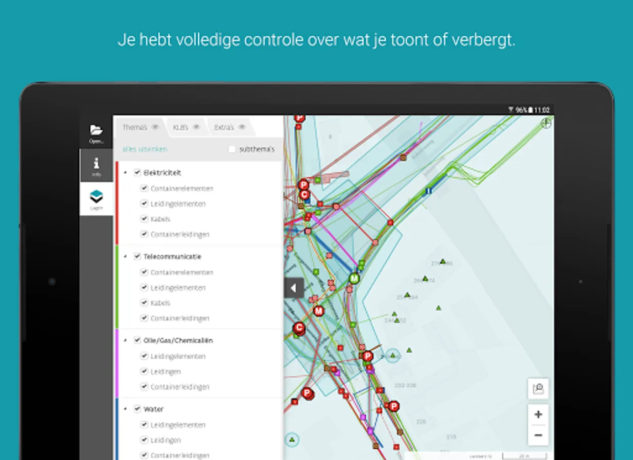 • Click and get a complete list of all infrastructure present at that point;