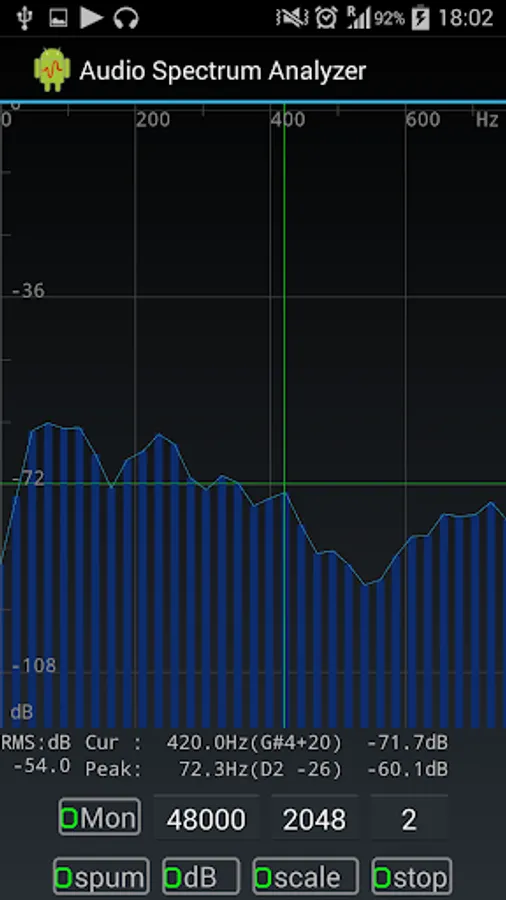 * Peak frequency detection (in unit of Hz and note+cent), with a moderate accuracy (FFT + interpolation).
