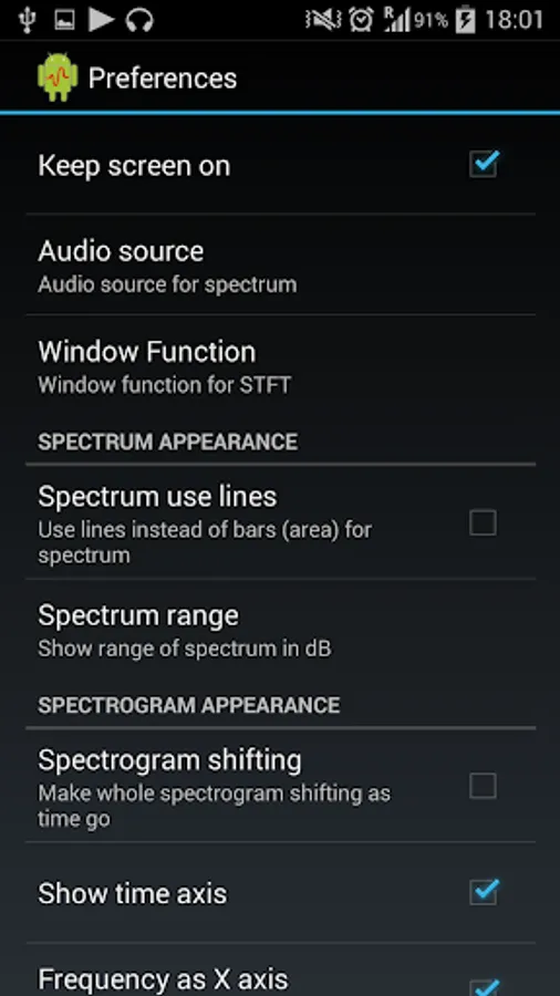 * FFT sample size range from 512 to 8192. Using half-overlapped (adjustable) time window to increase time resolution.