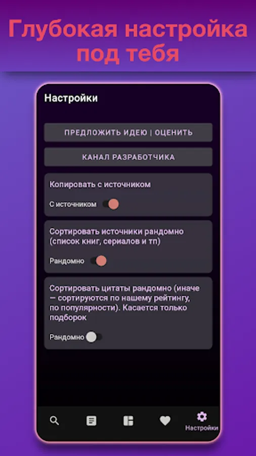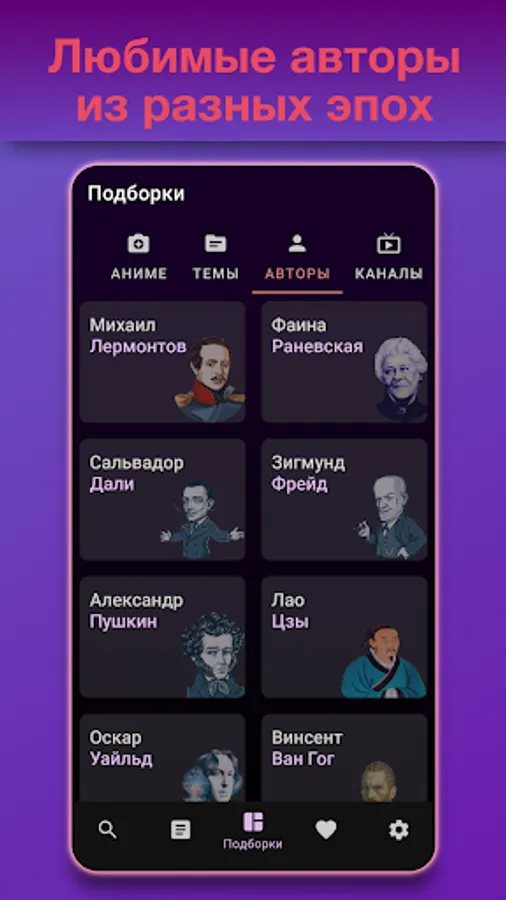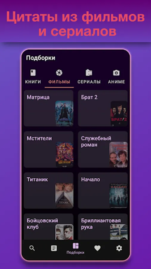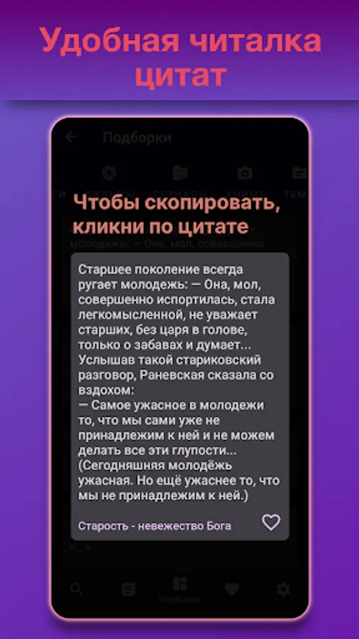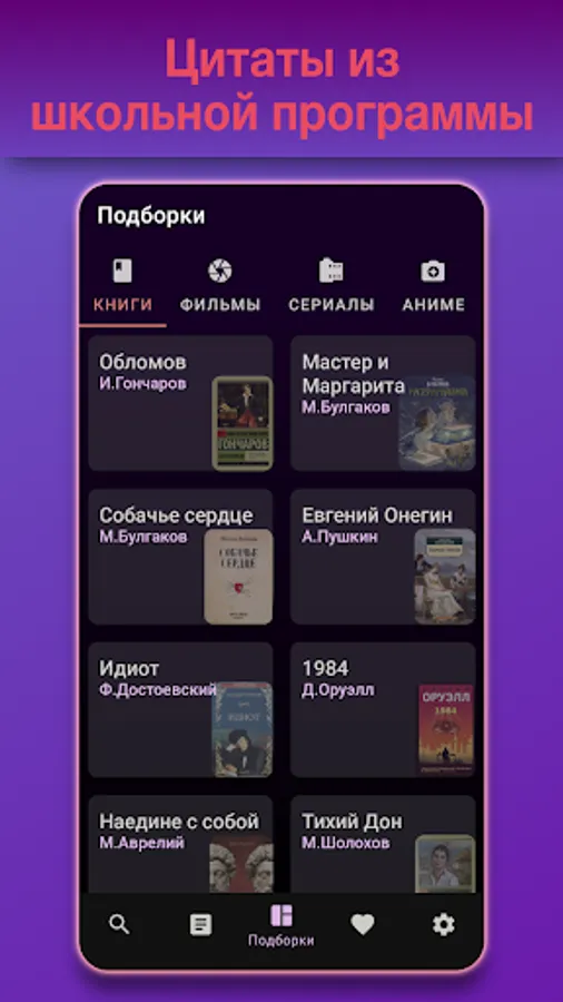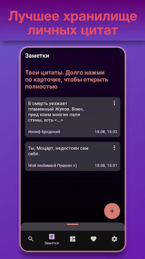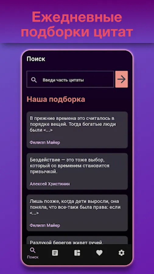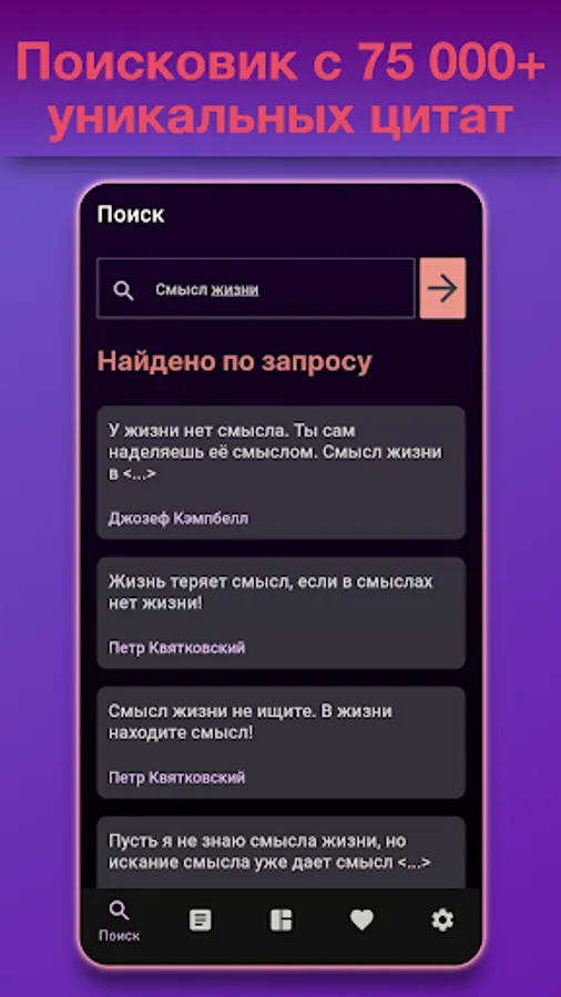 • Motto includes 75,000+ unique quotes from well-known and not-so-famous authors; phrases from films, TV series, anime, stand-up shows; wise thoughts from public speaking.