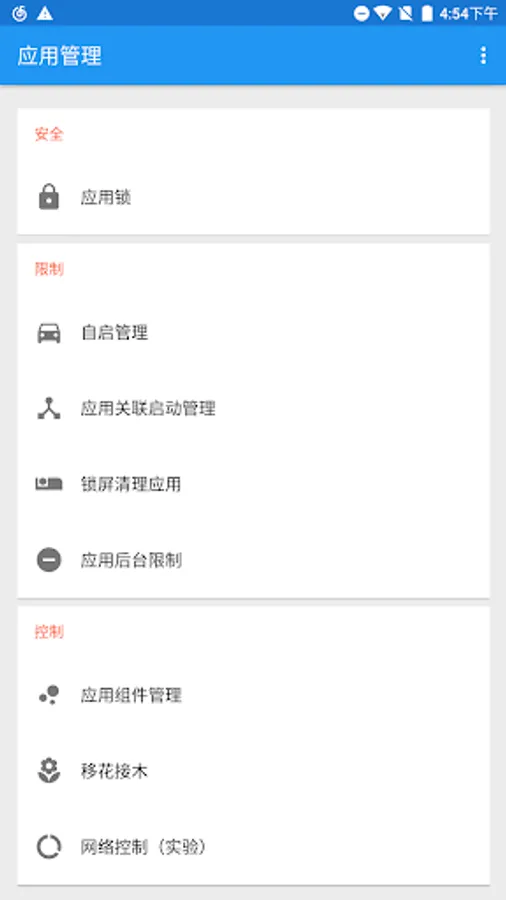 Restrict certain (selected by the user) applications related start (Services / broadcast).