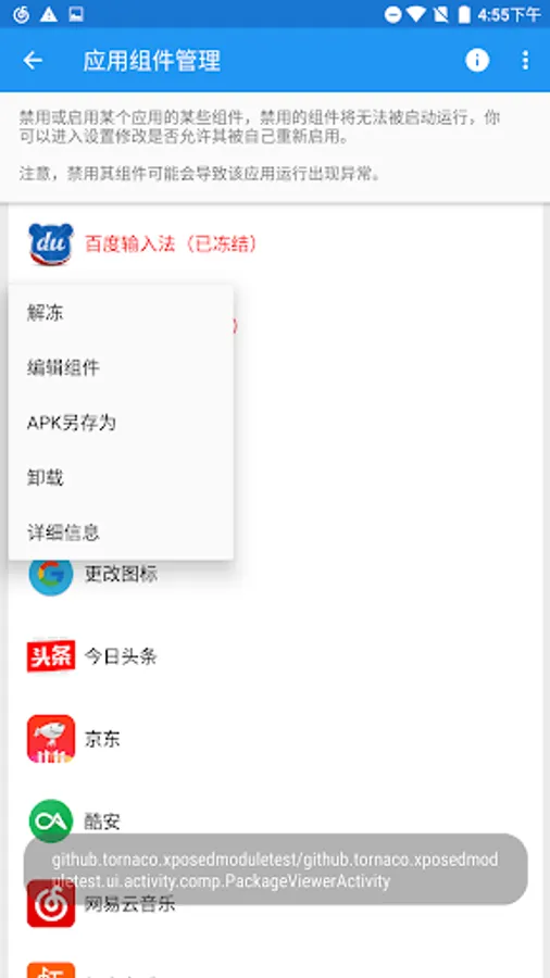 Disabling an application of some (selected by the user) Component (Services / broadcast).