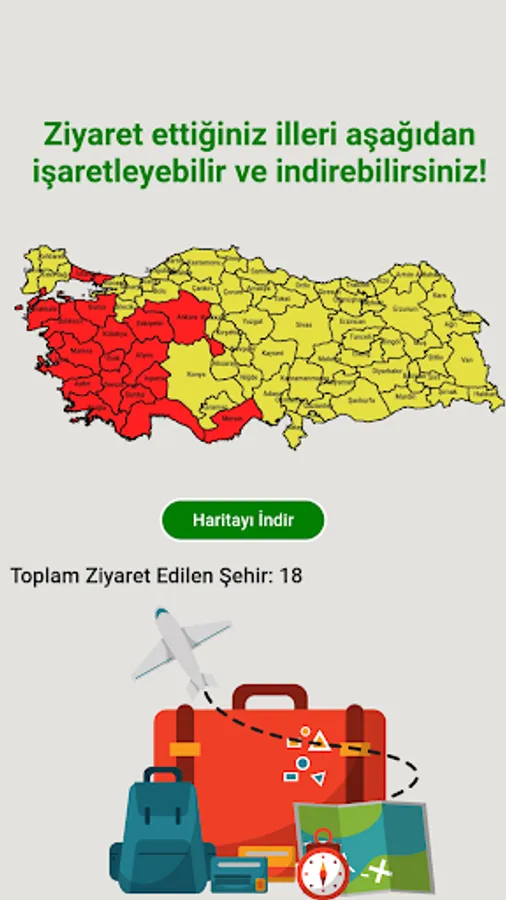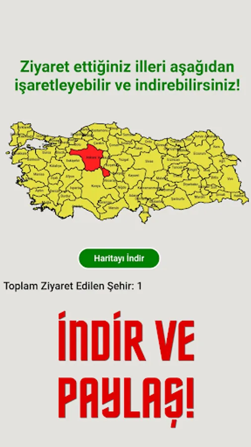 You can download and share the provinces you have visited in Turkey by marking them on the map.