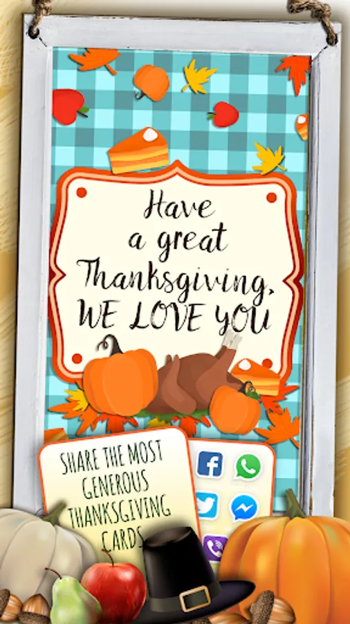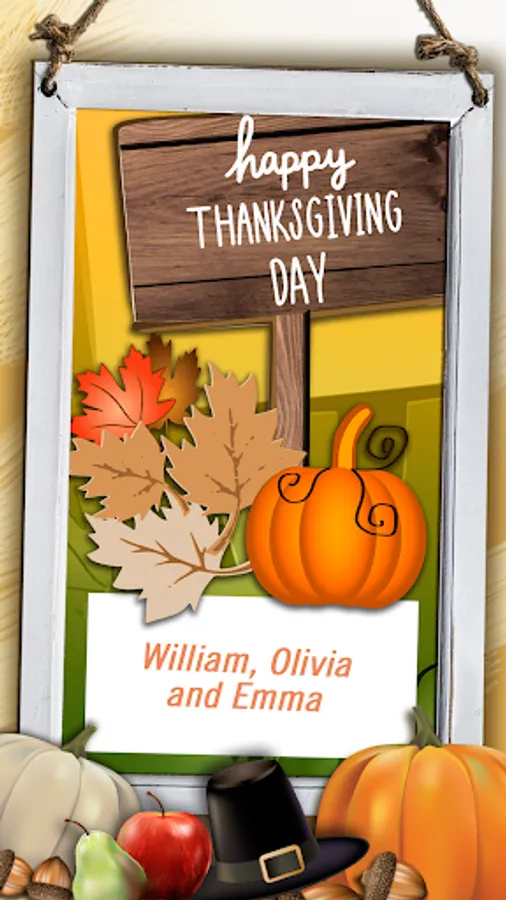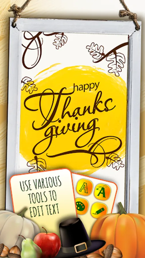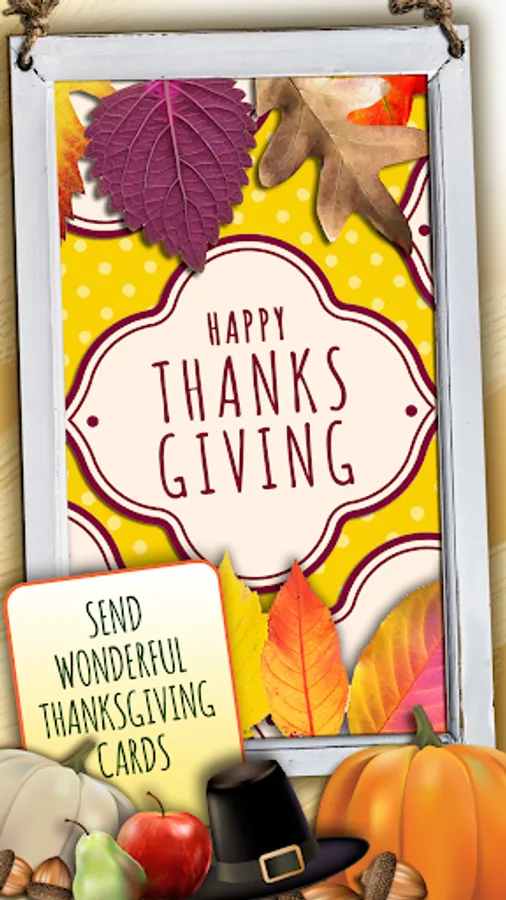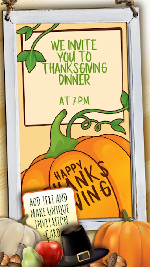 Share Thanksgiving recipes, but first share your customized invitations and holiday wishes and greetings on all social networks. Fill the cards decorated with pumpkins, turkey and autumn leaves in different colors. Install this 🍁 Thanksgiving Card Maker – Greetings and Wishes 🍗, enjoy designing custom greeting cards and invitations and wish everybody happy Thanksgiving!