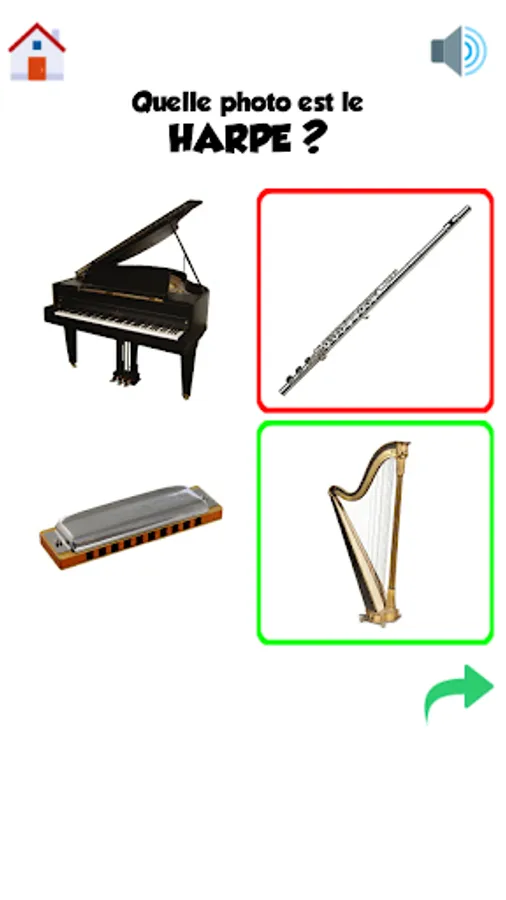 Game 2: One random French word from the selected category is displayed and you are asked to select the correct picture from the options.