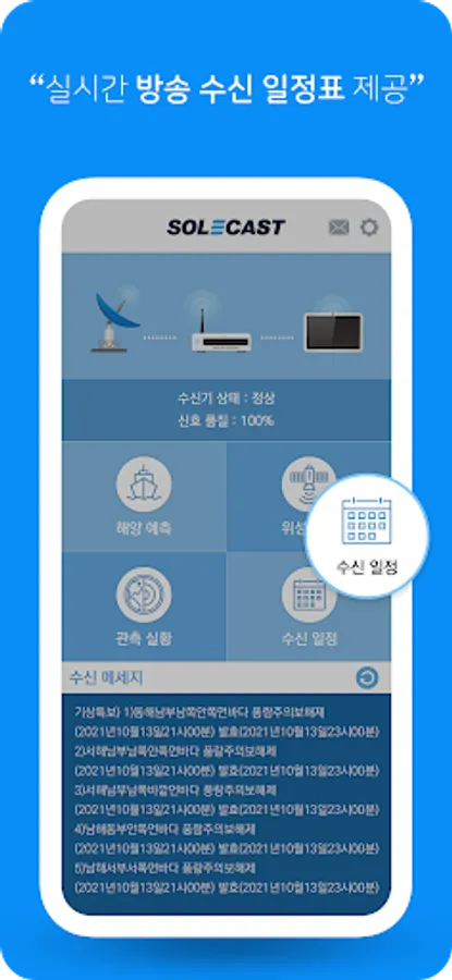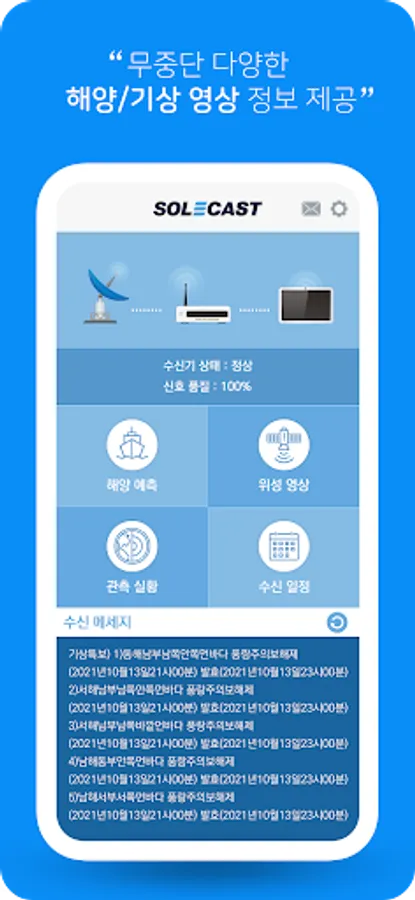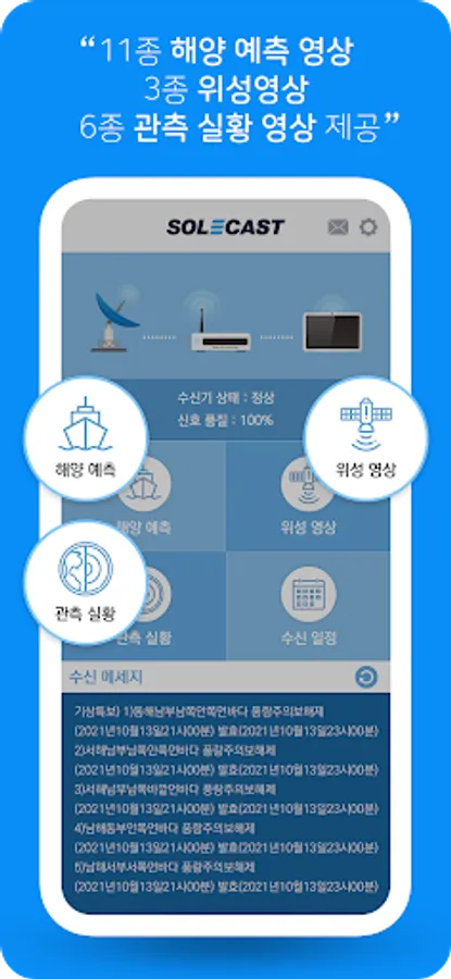 The weather/ocean/prediction information of Chollian Satellite 2A received from Soltap Co., Ltd. is displayed in real-time ‘365 days 24 hours’ through Android and iOS apps.