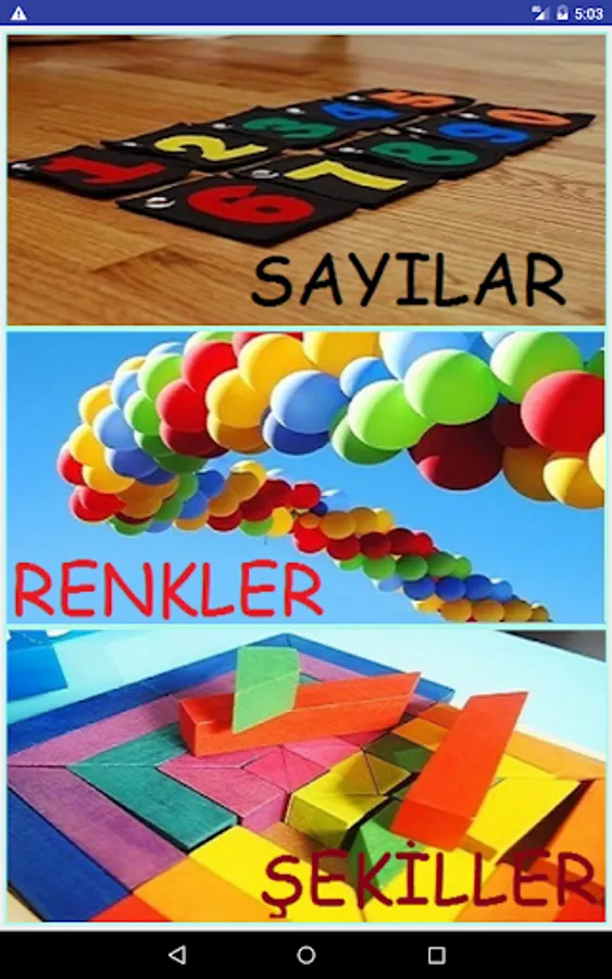 Kendi çocuğumdan esinlenerek hazırladığım, 1 - 5 yaş arası çocuklara hitap eden uygulamadır. Uygulamada sayıları öğretme ve ses yoluyla çocukların hafızalarına etki etme amaçlanmıştır. 1 ile 100 arasındaki sayılar arasında uygulanmıştır. Uygulamanın diğer bir özelliği ise başlıca renkleri ses ve görüntü yoluyla aktarmasıdır. Diğer bir opsiyon ise belli başlı şekilleri çocuklara yine ses ve renklerle aktarmasıdır. Uygulamaların devamı gelecektir. Saygılar...