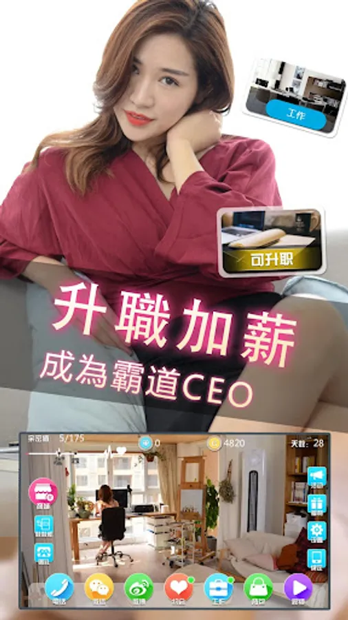* Players play the overbearing president in the game, and start a warm, romantic and ridiculous love story with the female secretary;