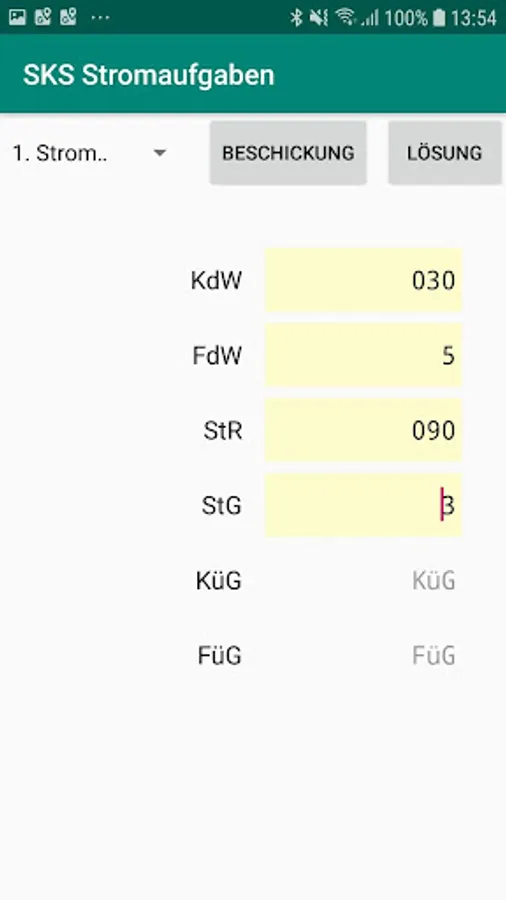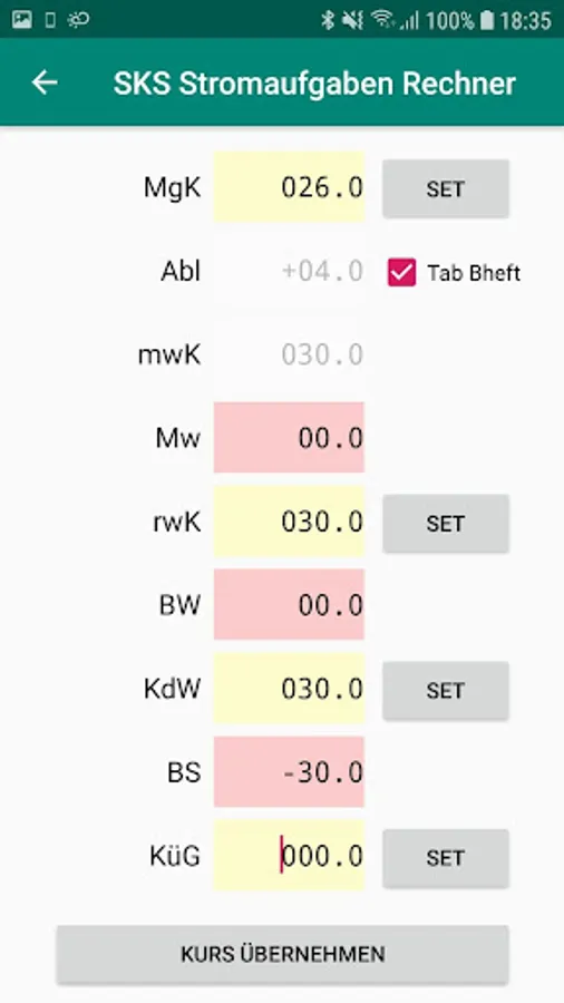 With charging KdW and KüG can be charged or previously determined for the current task.