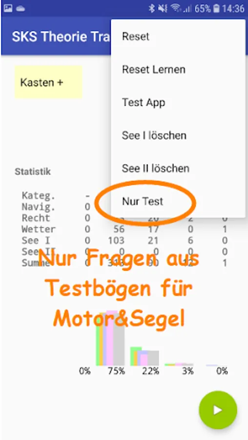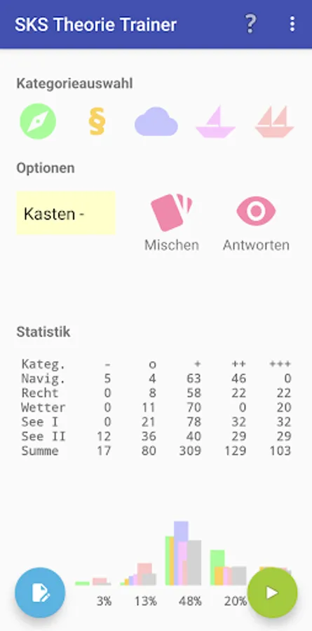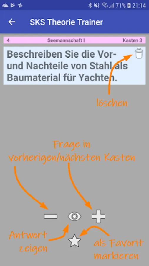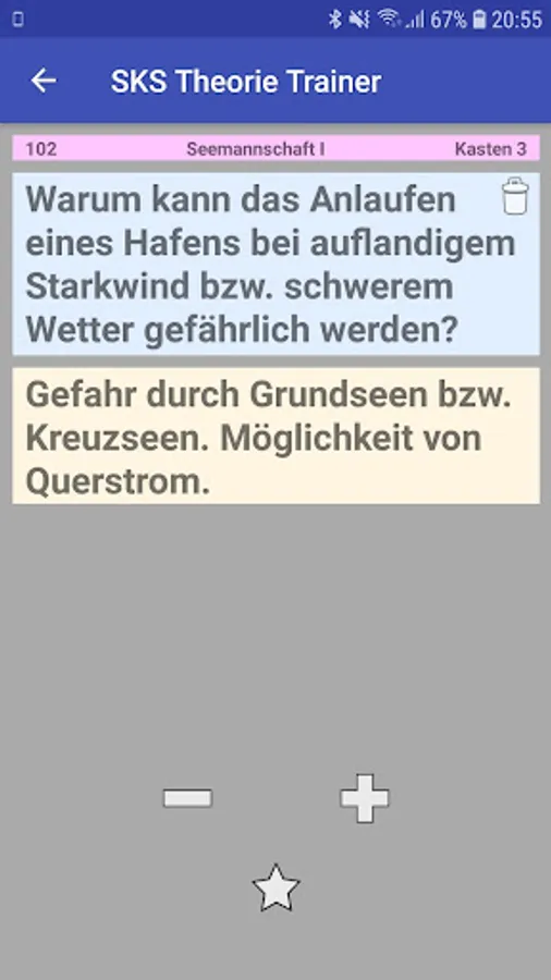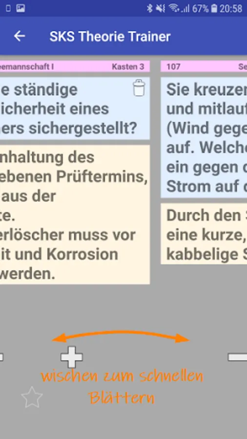 The SKS Theory Trainer sports coastal boating license corresponds to learning with flashcards.
