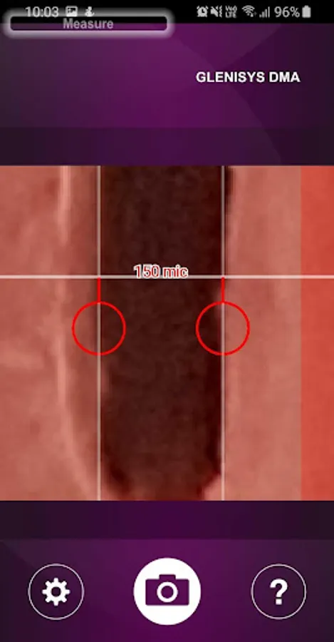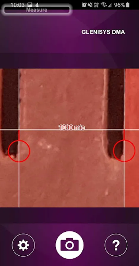 Measure: tool to measure general printed materials in micrometer range using stand and/or magnification lens. Photo is taken manually. Sharpest photo is selected based on more photos. During evaluation two reference point can be set by single click. Zoom is possible with red stripe on the right side of the picture. Reference value can be set up using single click on measurement value.