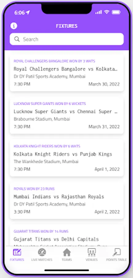 This application contains the details regarding the IPL T20 Tournament schedule, Teams & Squads, Venues, and Points table. Get the latest scores, match details, and more for IPL T20 on your smartphone. Download now and stay tuned!