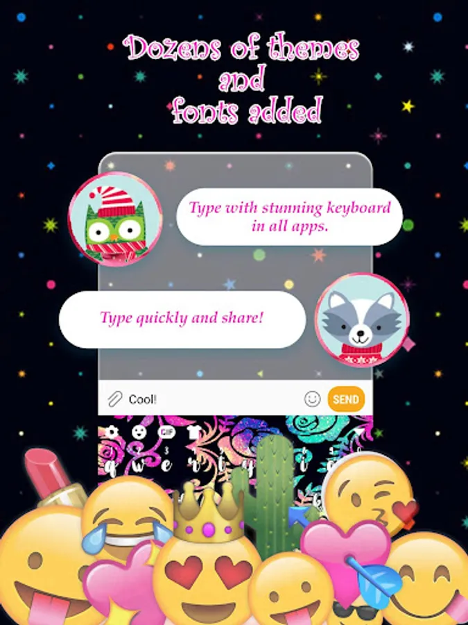 ❤ Glitter Rose Emoji Keyboard Theme ❤ is a free app that is perfect for you and your friends, and you won't be able to resist its sweet cuteness. You will never wish to let your phone go because of our "Glitter Rose Emoji Keyboard Theme”, and when you do, this colorful keyboard will be there waiting for your next touch. Enjoy!
