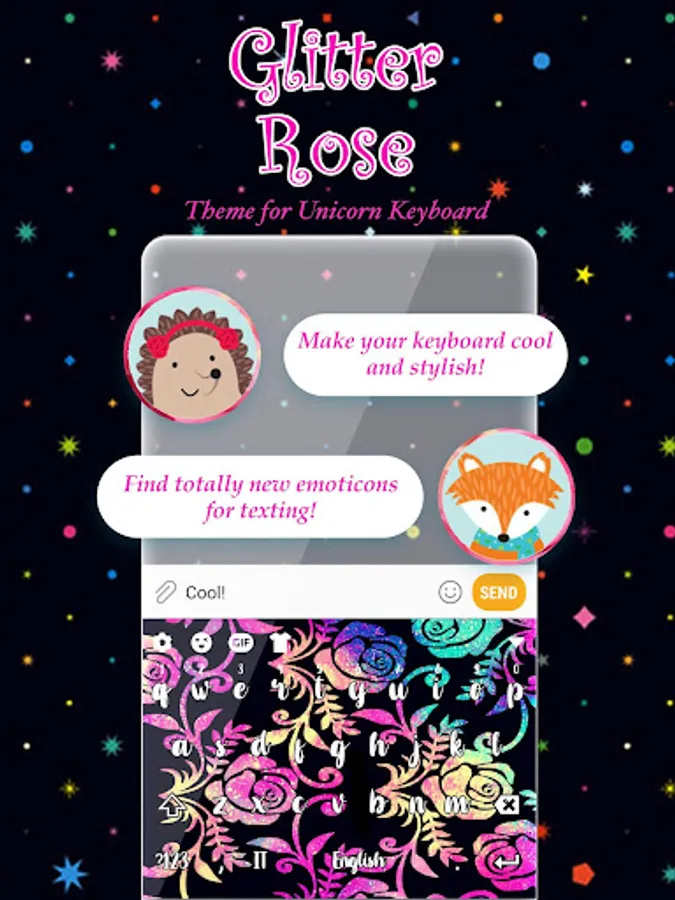 Glitter Rose Emoji Keyboard Theme is the perfect keyboard theme if you want for a fully transformed keyboard! Have all the amazing glitter rose wallpaper and keyboard design, start using your keyboard with Glitter Rose Emoji Keyboard Theme for free. See the HD screenshots to see how this keyboard theme will look on your phone! Have the most beautiful colorful unicorns 100% Free.
