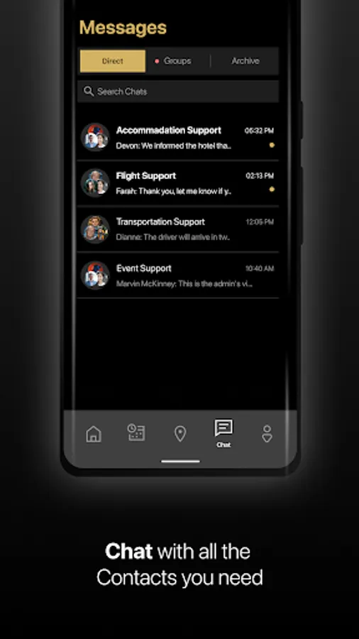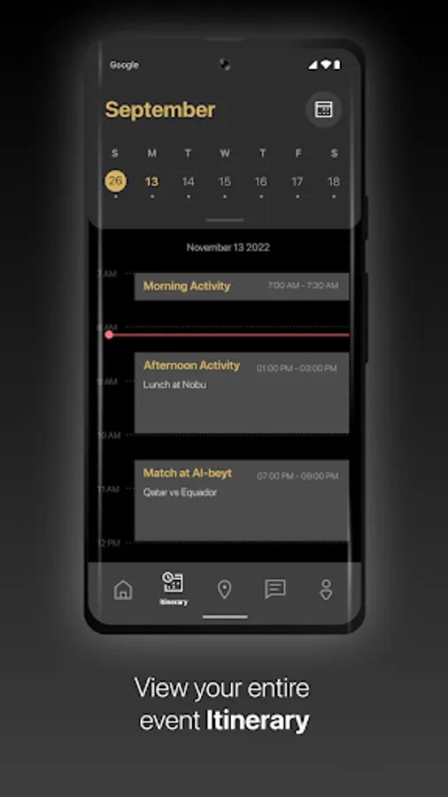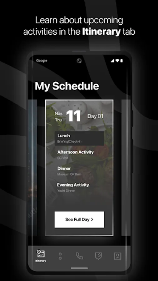 Itinerary: check the entire trip schedule, all the event days with every activity. Details about each activity, cultural etiquette, who’s attending and the location it will be held at, with the ability to see directions to said location using your favorite map app.