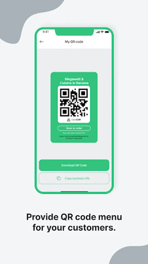 - Display your QR code menu and automatically build your website to allow customers to order online and increase your online presence!