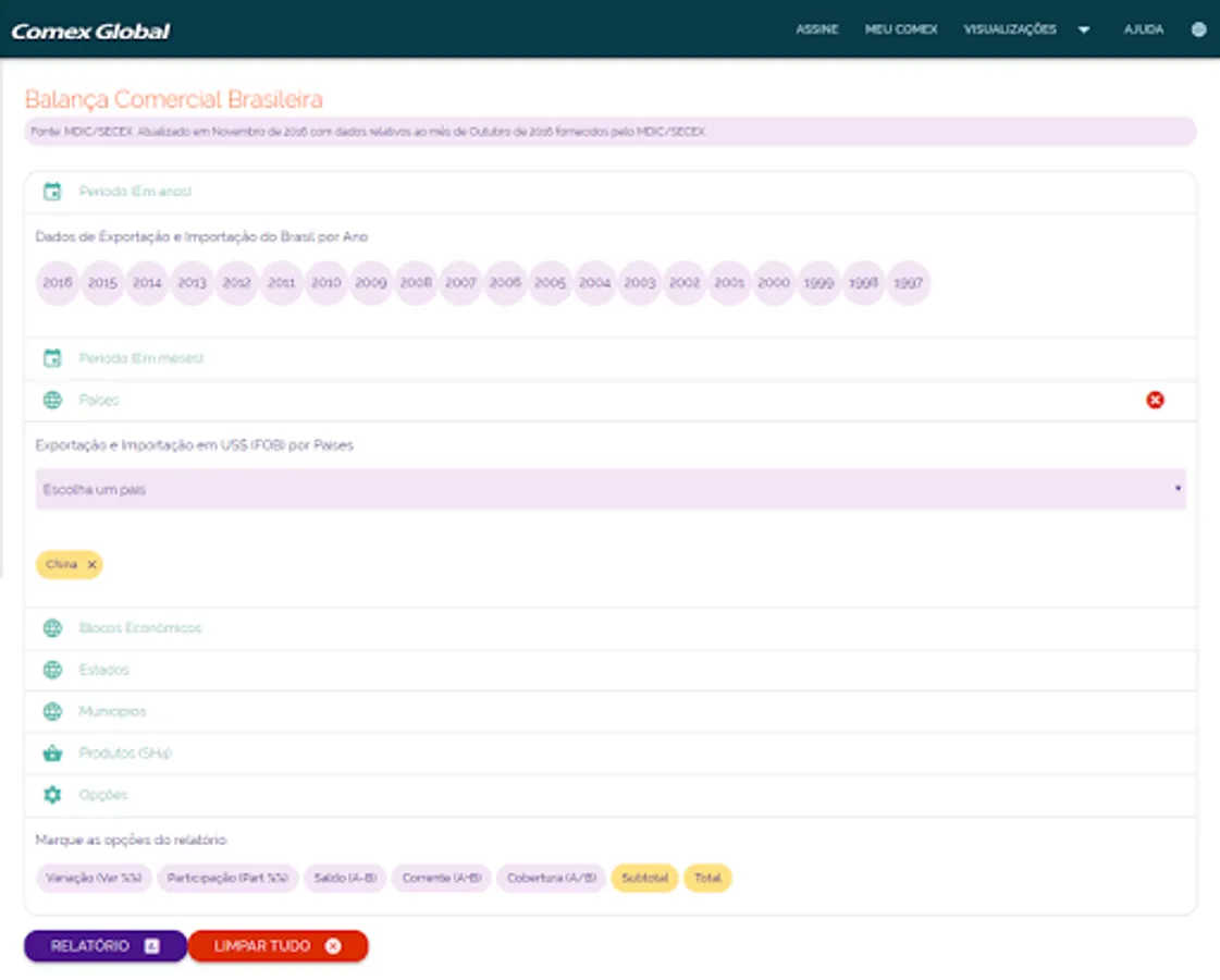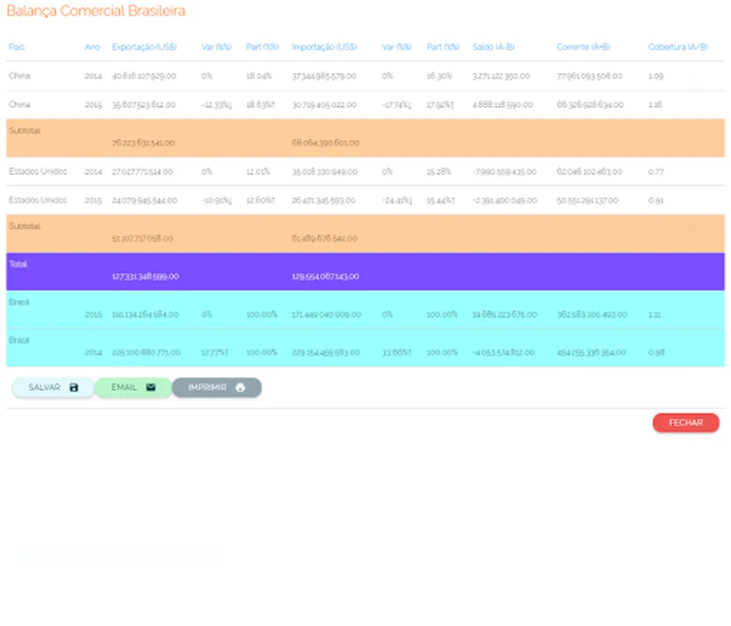 With information from the Ministry of Development Database, Industry and Foreign Trade (MDIC) and more precisely the Aliceweb, the application allows the user / subscriber access to data ranging from historical series of the trade balance of Brazil (1997 2015 ), the data on trade between Brazil and countries and economic blocs. Are also acesiveis through a simple click, data of the trade balance of states and municipalities, plus information on key products exported by Brazil.