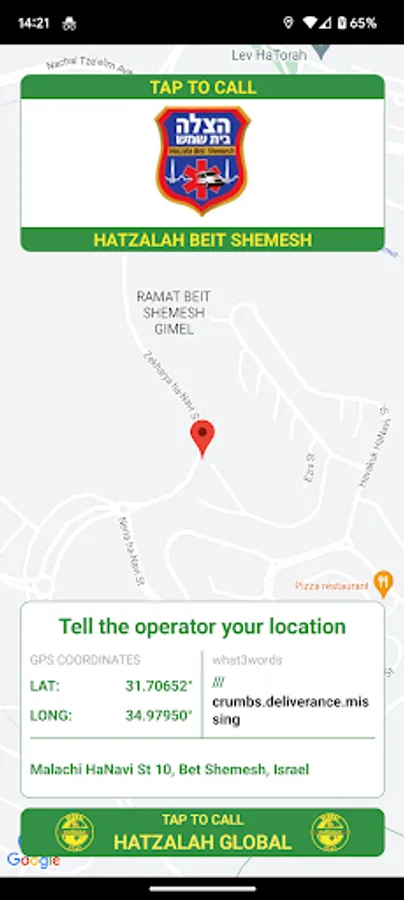 Hatzalah Global's new app enables you to easily call Hatzalah Global in case of an emergency. Hatzalah Global's call-takers will endeavor to assist. GPS integration allows your exact location information to be sent to emergency call-takers when the emergency number is called.